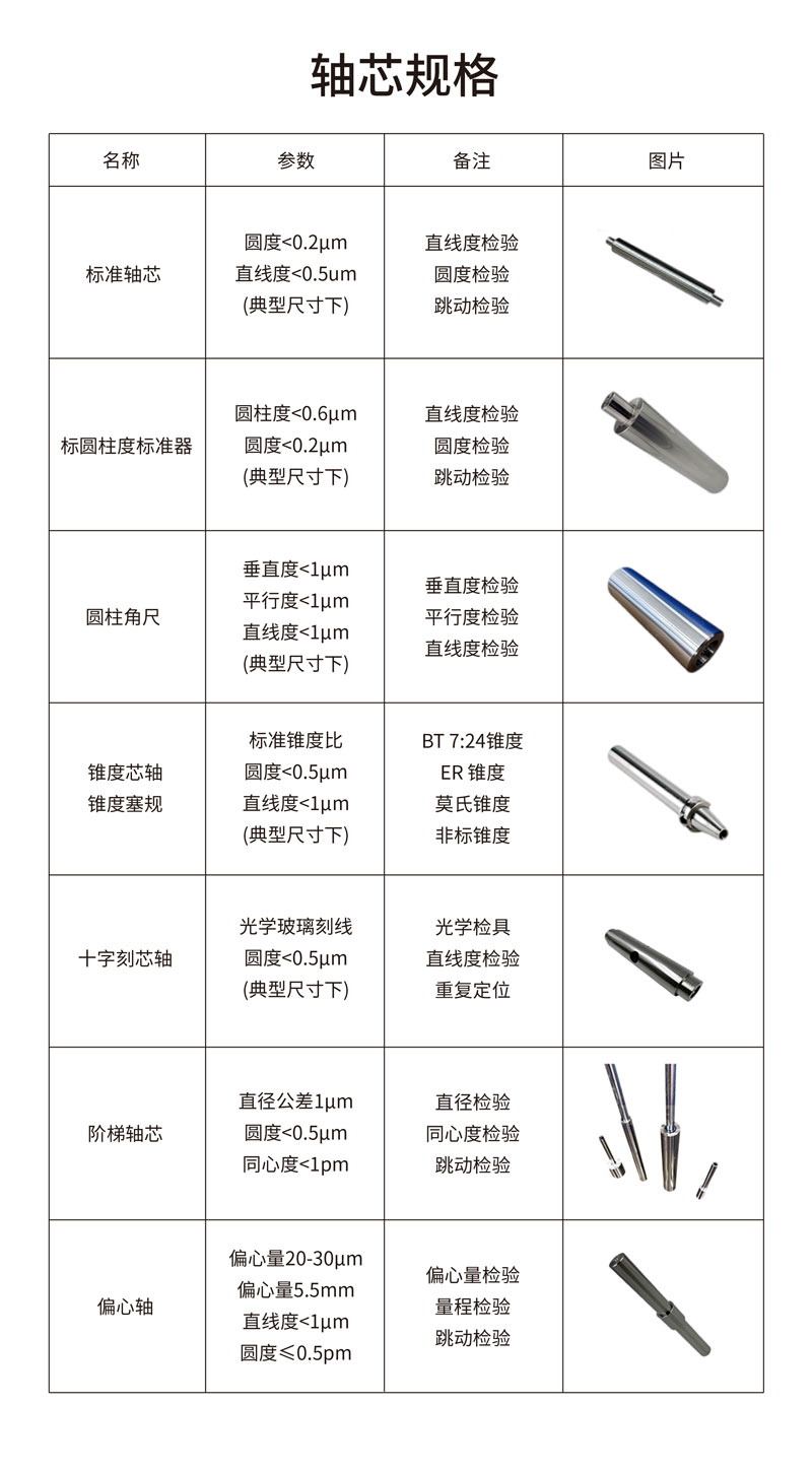 標(biāo)準(zhǔn)芯軸、偏心軸、階梯芯軸、錐度芯軸、錐度塞規(guī)、十字刻線芯軸、圓柱角尺、圓柱度標(biāo)準(zhǔn)器