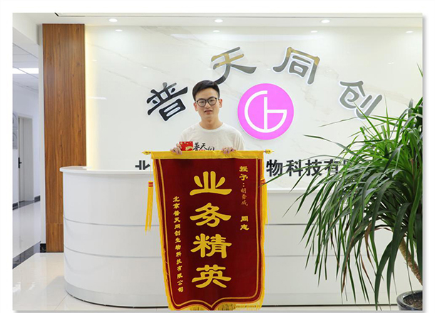 2020年7月6日,普天同創(chuàng)舉行6月優(yōu)秀員工表彰大會??偨?jīng)理岳維、業(yè)務(wù)經(jīng)理周麗為6月業(yè)務(wù)標(biāo)兵秦夢雅、胡雪成頒發(fā)榮譽(yù)錦旗和獎金。