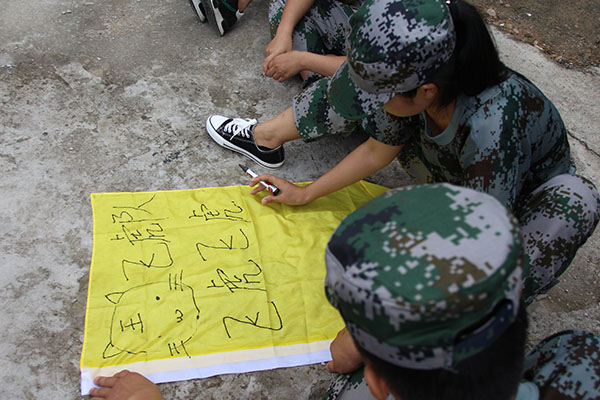 初秋天朗,驕陽未消。在拓展任務開始之前,教官將我們分成4支隊伍后,各隊討論推選出隊長,并設計隊名、隊旗、隊歌和展現(xiàn)各隊別具特色的口號。全部完成后,為期兩天的團隊之旅、挑戰(zhàn)之旅、感恩之旅正式開始。