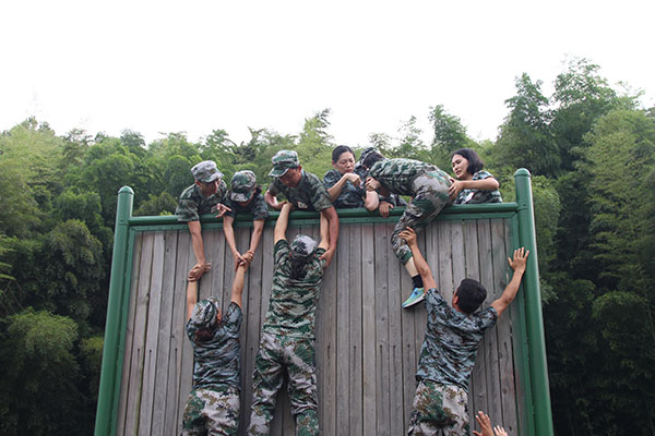 畢業(yè)墻”。所有隊員在團隊協(xié)作攀登4.27米的高墻。