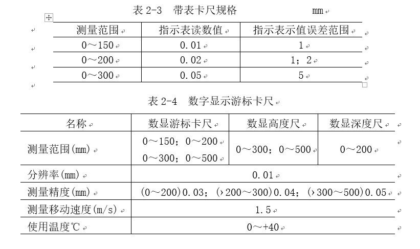 帶表卡尺的規(guī)格見表2-3。數(shù)字顯示游標卡尺的規(guī)格見表2-4。