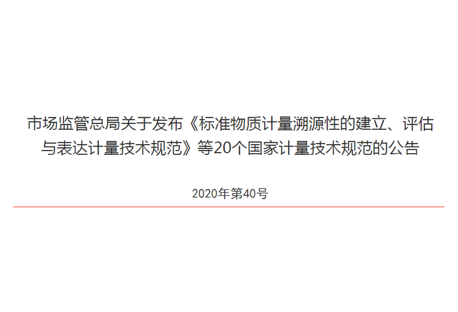 ?2020年9月24日,市場監(jiān)管總局發(fā)布了一則公告,表明根據(jù)《中華人民共和國計量法》有關(guān)規(guī)定,正式發(fā)布《標(biāo)準(zhǔn)物質(zhì)計量溯源性的建立、評估與表達(dá)計量技術(shù)規(guī)范》等20個國家計量技術(shù)規(guī)范。
