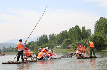 乘船而下,同事們也開始了激勵(lì)的搏擊,任清爽的溪水批頭蓋臉而來,讓人忘卻夏日的炎熱。